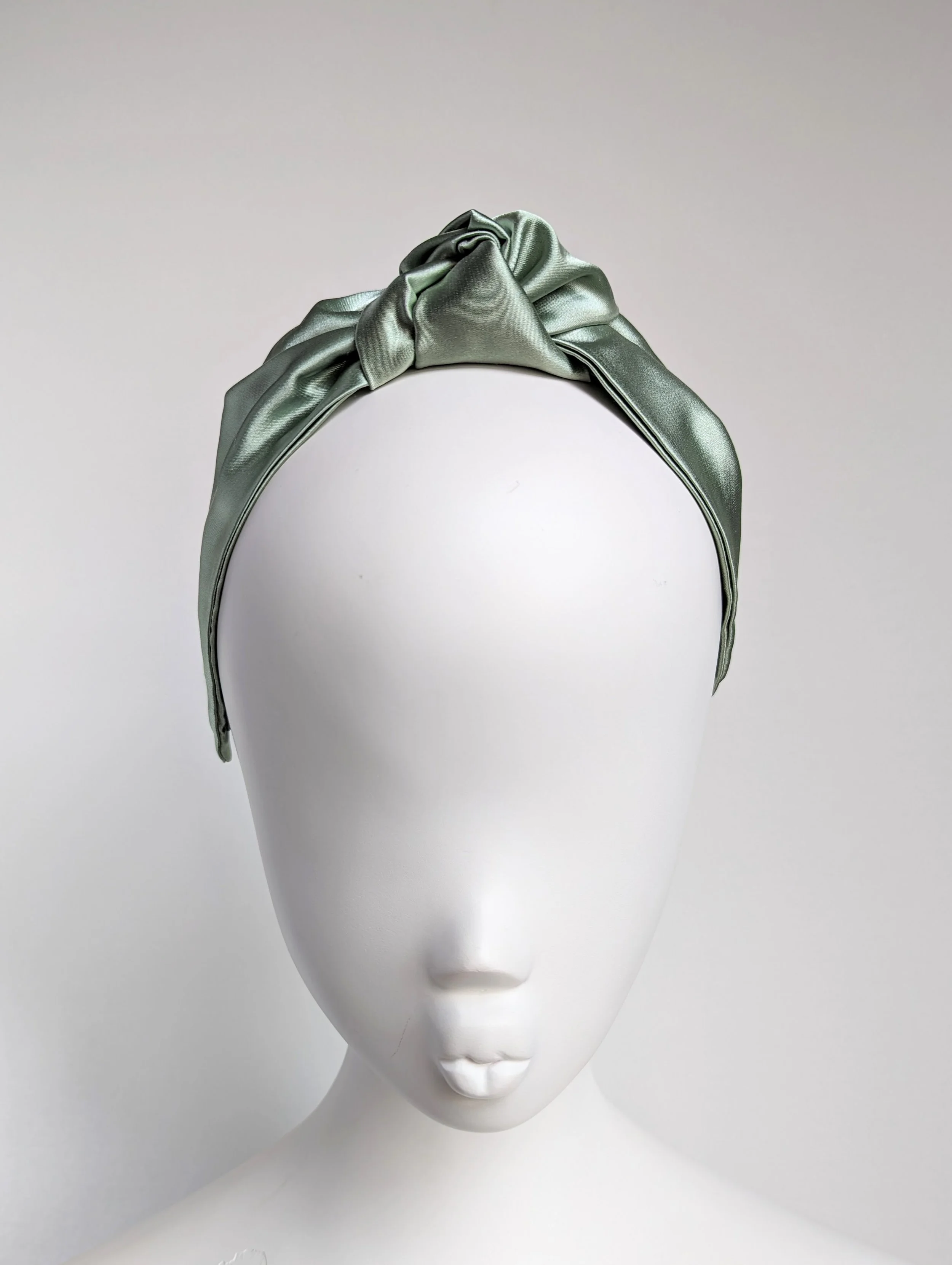 Mint Green Luxury Satin Knotted Alice Band Headband